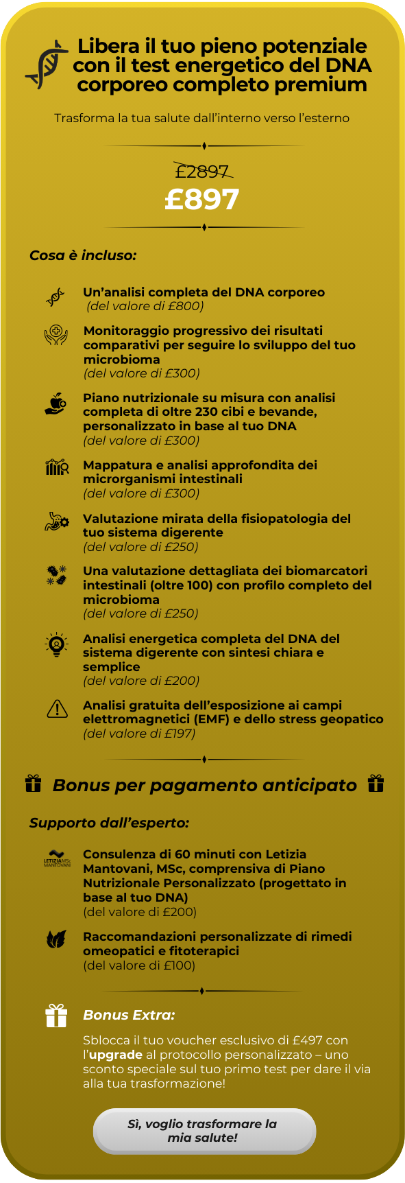 Questa tecnologia avanzata esplora le condizioni del tuo corpo fino al livello cromosomico, individuando sottili squilibri che spesso passano inosservati.
